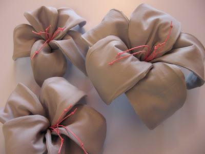Едно такова нещо от тази седмица са нещата за една сватба – в розово сивата гама … лалета, подаръци за гостите – розово-сиви жабоци и … още цветна украса.